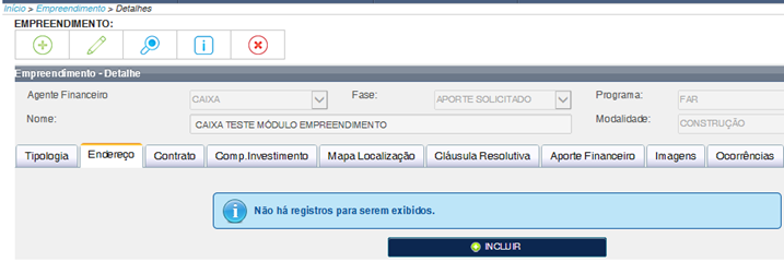 Para inserir as informações é necessário clicar no botão INCLUIR. E aparecerá a tela de edição: