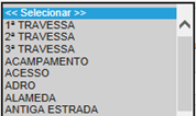 Tipo Logradouro => escolher o campos (rua, avenida, etc.) conforme consta no CEP =>